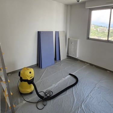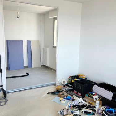 To increase the size of one bedroom, an old closet had to be demolished. Another bedroom needed to be created by installing a separating wall. The apartment lacked air conditioning which is an absolute must in the South of France, so walls had to be drilled.